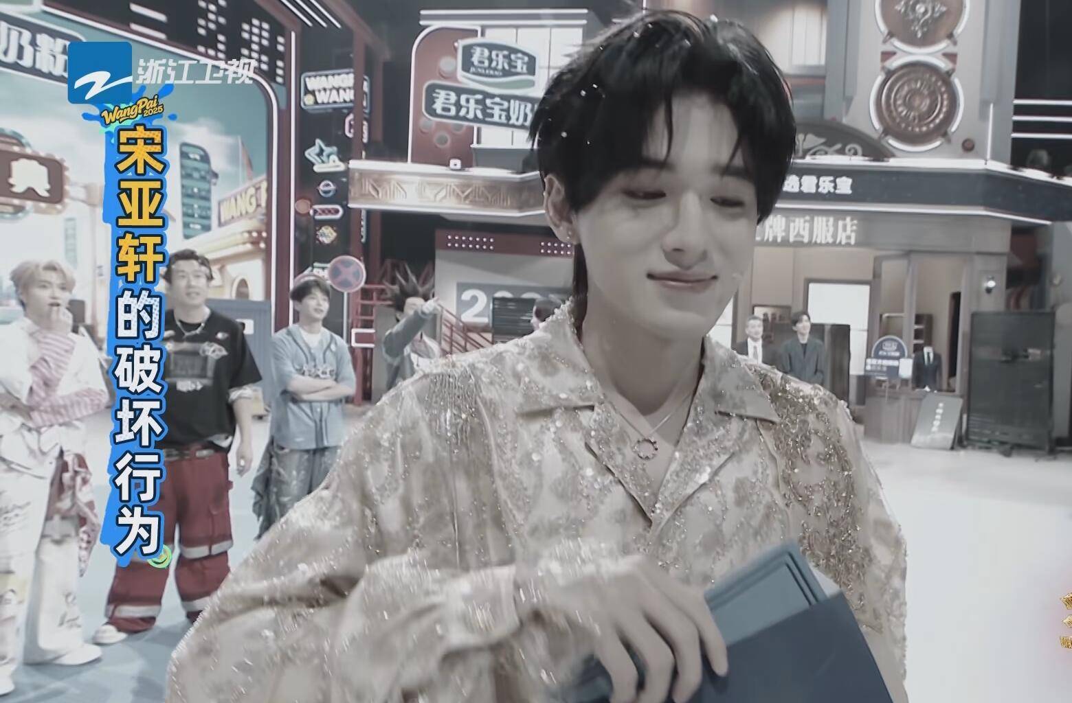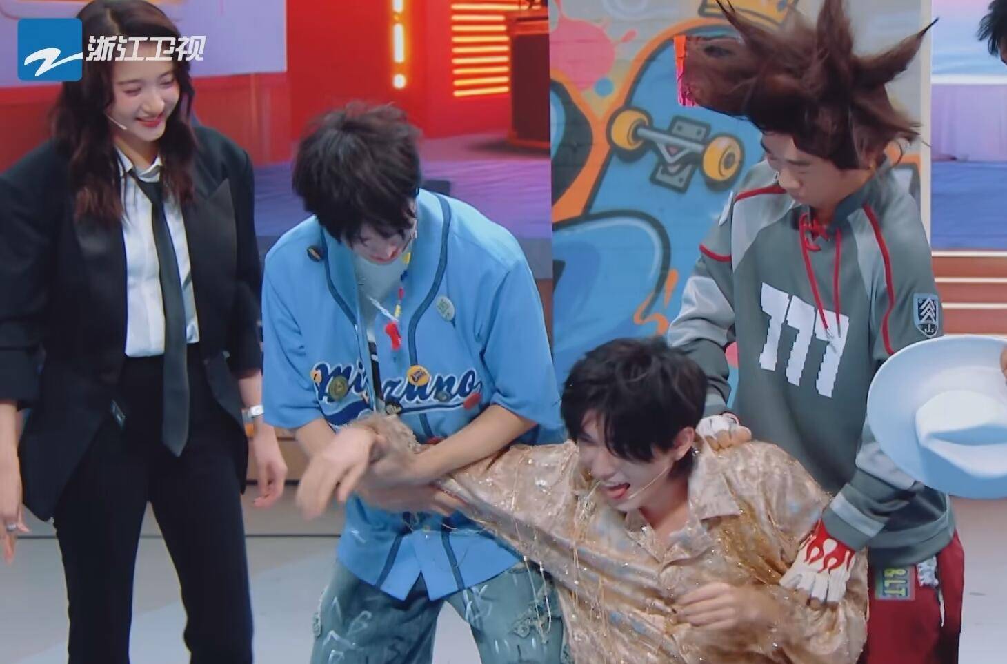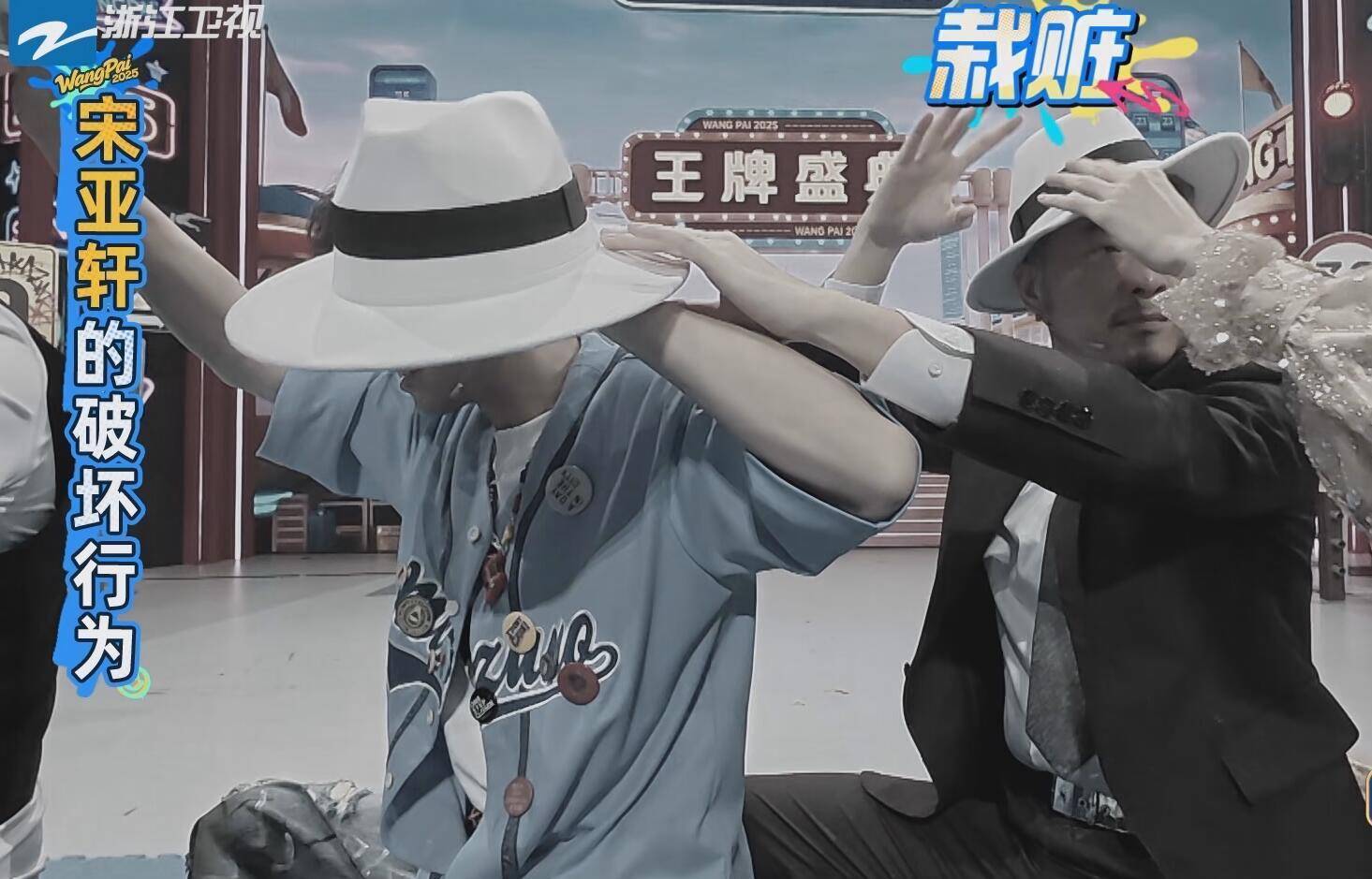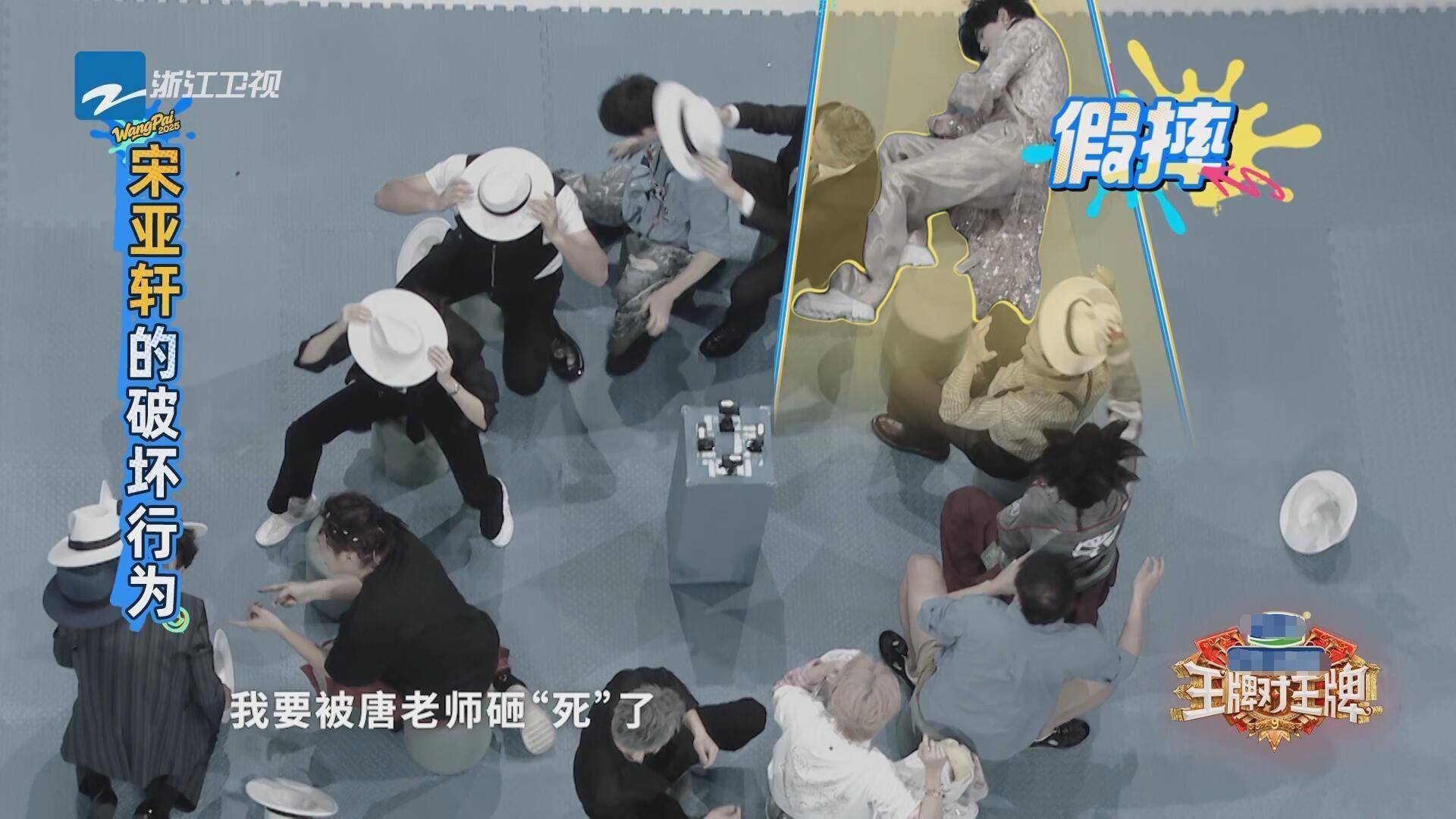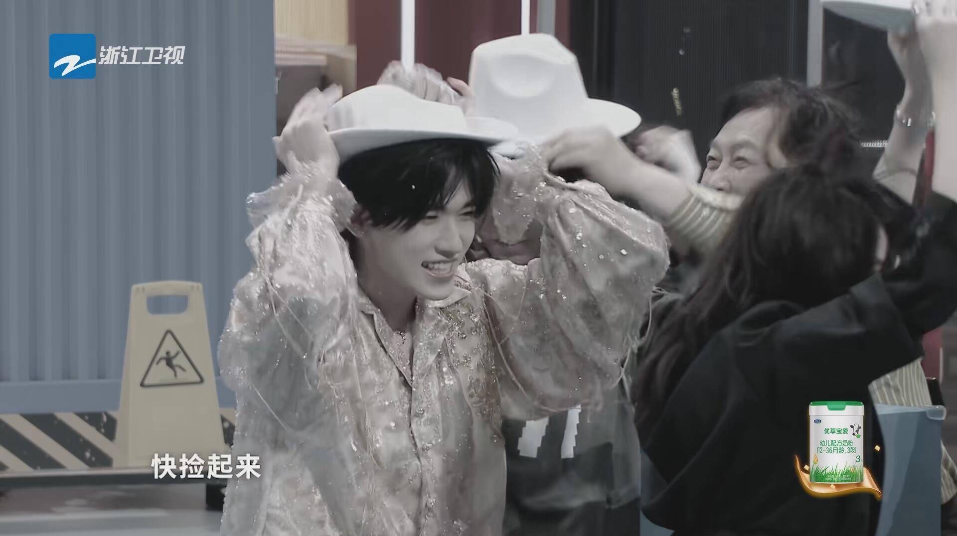 在传递帽子的时候,宋亚轩玩了一个假摔。